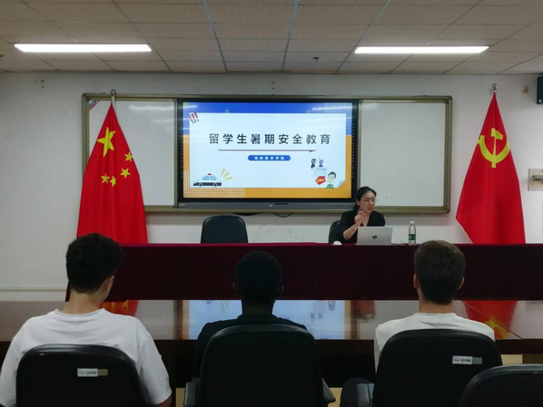 为切实增强来华留学生暑期安全防范意识,7月11日下午,国际教育学院召开暑期安全教育大会。辅导员、暑期值班人员及全体在校留学生参加会议,会议由国际教育学院党总支副书记张敏主持。