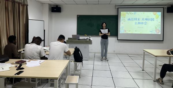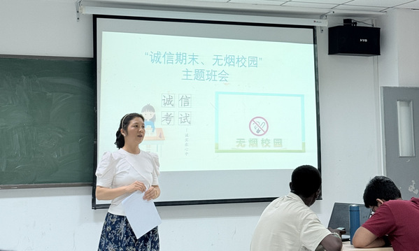 为深入贯彻落实学校学工处《关于开展无烟校园管理规定宣贯暨期末考试诚信教育的通知》要求,进一步强化学生诚信意识,营造健康安全的校园环境,国际教育学院近期组织留学生各班级开展“诚信期末、无烟校园”主题班会活动。