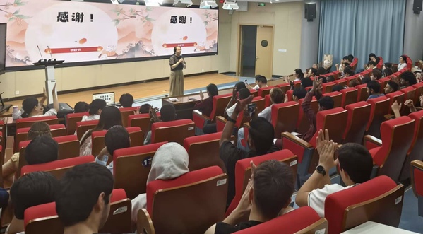 歌会尾声,学院党总支书记沈云对活动作了点评。她表示,本次歌会以歌曲为文化载体,搭建了师生交流、中外融合的温馨平台,既让留学生沉浸式感受了中国传统节日的底蕴,也让新生在集体活动中快速融入学院大家庭。沈云提前向师生送上中秋祝福,祝愿大家在团圆时刻收获温暖与力量,在跨文化学习生活中共同成长。