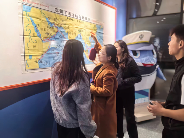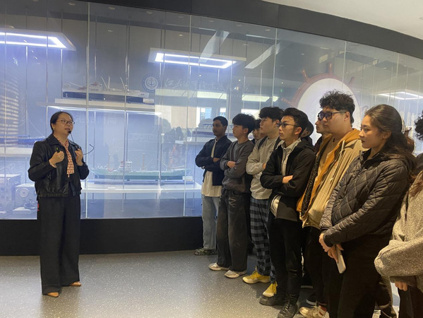 本次校史馆参观由党总支书记沈云担任讲解。在她的讲述下,留学生们沿着学校的历史发展脉络,通过一幅幅珍贵的历史图片、一件件厚重的实物档案、一段段精彩的影像资料,系统了解了学校自建校以来取得的辉煌成就,深刻感受了历代海院人的奋斗精神。参观过程中,留学生们神情专注,兴趣盎然,不时驻足观看,并就感兴趣的历史典故、校园文化及馆藏物品与带队老师进行交流探讨。