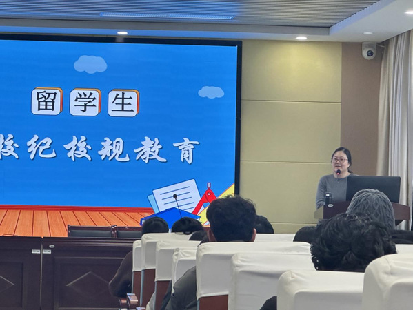 会上,学事办主任王婷围绕“安全第一 合规为基”的主题,系统开展了安全教育。在防诈安全方面,结合典型案例,重点讲解了短信诈骗、网络诈骗等常见诈骗形式,提醒留学生坚持“不轻信、不透露、不转账”的原则,切实提高防范意识。在消防安全方面,明确了宿舍安全红线,严禁使用大功率电器和私拉乱接电线,并对学校无烟校园建设管理办法进行了再解读,强调吸烟不仅危害健康,更容易引发火灾,呼吁留学生自觉遵守校园规定,共同维护无烟、安全的校园环境。会议还特别关注留学生心理健康,鼓励大家在面对学业压力与文化适应等问题时,主动寻求学校心理咨询支持。