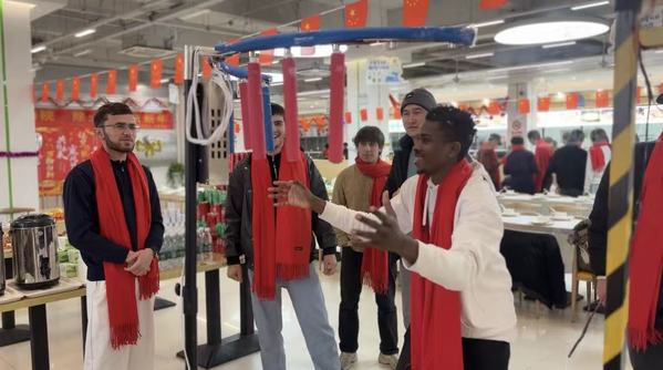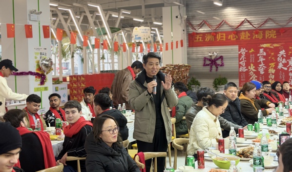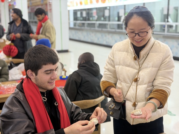 活动尾声,郑军与师生围坐一起,共赴一场温情满满的团圆宴。大家品尝着亲手包制的饺子和立康餐饮精心准备的中式美食,大家举杯相祝,用中文互道“新年快乐”“万事如意”,欢声笑语回荡席间。窗外寒意正浓,屋内却暖意融融——这份跨越国界的温情,让远离故土的学子们在海院大家庭中找到了归属感,也将中华传统文化的种子播撒进更多年轻心灵。
