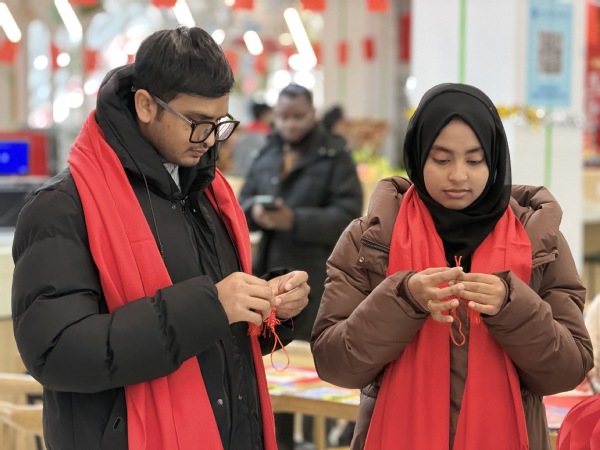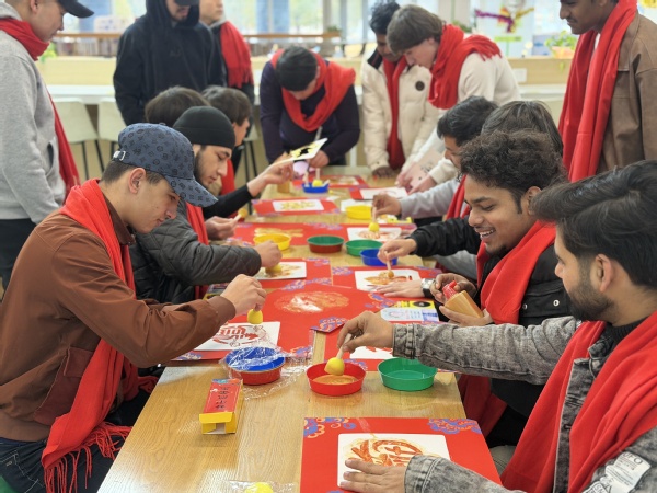 本次联欢会以“文化传情、团圆暖心”为核心,精心设置了拓印福字、书写春联、趣味游戏、包饺子等极具中国特色的文化体验环节,让留学生在动手实践中近距离触摸中华优秀传统文化的底蕴。活动现场,留学生们热情高涨、踊跃参与,一笔一画书写春联,认真描摹拓印福字,互帮互助学习包饺子,在欢声笑语中感受着春节的喜庆氛围。不同国家的青年学子围坐在一起,在互动切磋中增进彼此了解,在欢声笑语中凝聚深厚情谊,现场处处洋溢着团圆和谐的浓厚气息。