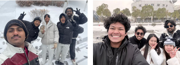 对于寒假留在校园的留学生,国际教育学院持续通过组织各类文化体验活动,丰富他们的假期生活,传递温暖关怀。雪落无声,情谊绵长,一场简单的踏雪之行,凝聚成一段难忘的跨国记忆,也为他们的留学生活添上了一抹纯净而明亮的色彩。